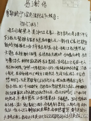 “請領導一定要想辦法幫我找到這位救命恩人,因為沒有他,我都不知道還能不能給你們寫信了。”