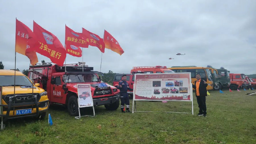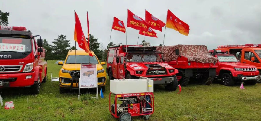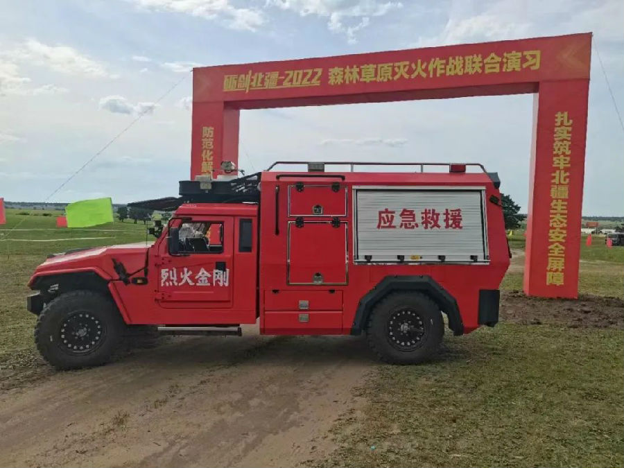 烈火金剛應(yīng)急消防救援車應(yīng)邀參加草原消防滅火演示。