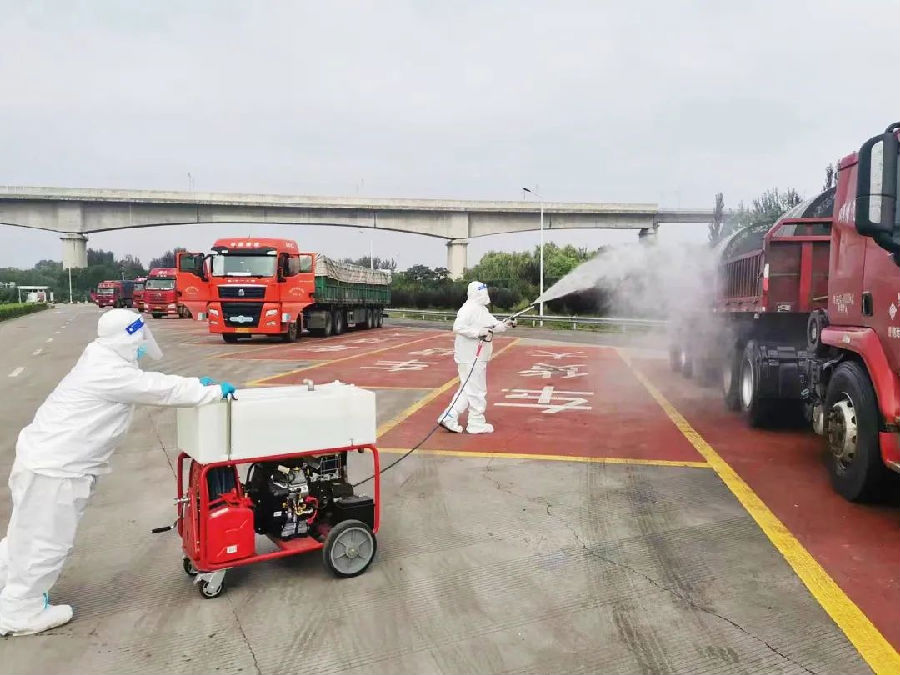 服務區工作人員嚴格對重點區域進行消殺