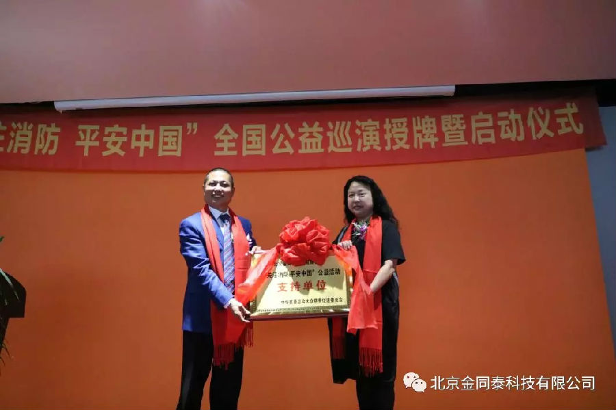 2019年5月12日,是個非常溫馨的日子。這天既是母親節,又是國際護士節,還是全國防災減災日。然而,對于北京金同泰科技有限公司來說更個喜慶的節日。由中國慈善總會大眾慈善促進委員會、中國國際教育電視臺共同主辦的“關注消防 平安中國”公益活動授牌暨全國消防主題公益巡演啟動儀式在北京金同泰科技有限公司舉行。