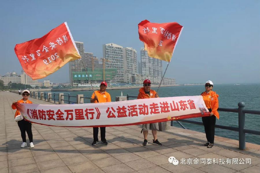 壯麗七十年,時代譜新篇。在祖國七十華誕之際,由中華慈善總會大眾慈善促進委員會、中國國際教育電視臺、北京金同泰科技有限公司聯合發起、中國安全產業協會指導、山東國泰科技有限公司協辦的2019《消防安全萬里行》公益活動正式拉開帷幕。自9月6日起,《消防安全萬里行》團隊于北京響水湖長城出發,于9日來到山東省威海市。