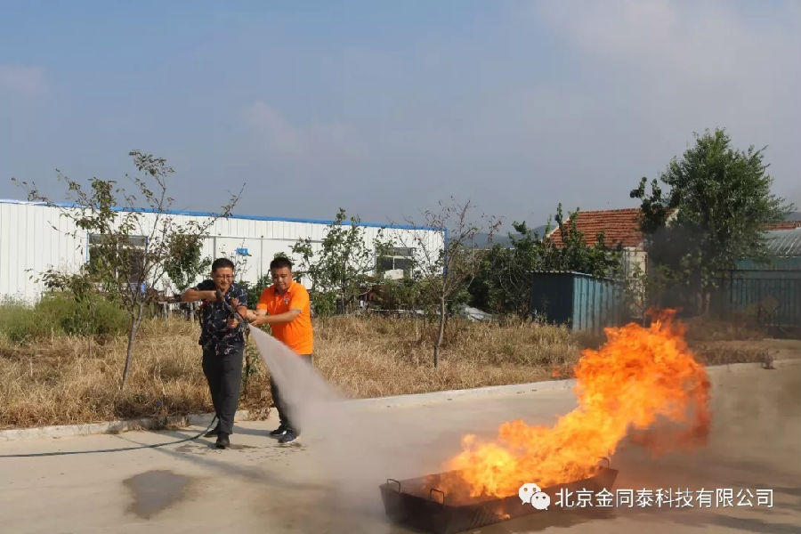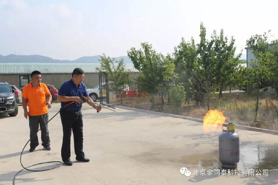 威海市企業員工體驗移動式高壓細水霧滅火裝置快速滅掉煤氣罐火效果