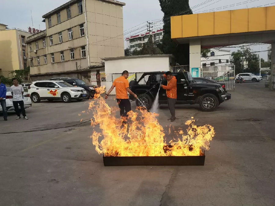 在隨后進(jìn)行的移動(dòng)式高壓細(xì)水霧滅火演示中,騰空而起的火焰瞬間被撲滅,充分展示了“天下第一槍”移動(dòng)式高壓細(xì)水霧滅火裝備快速有效撲救汽油火、電器火災(zāi)的滅火威力,企業(yè)員工對(duì)滅火效果給予好評(píng)。