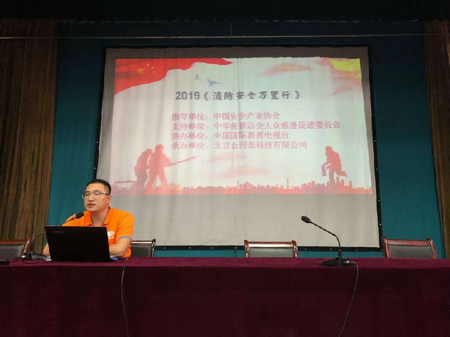 萬里行組委會消防宣傳員,金同泰工程師劉文杰為大家精彩講解消防救援安全知識和移動式高壓細水霧滅火裝備性能,撲救火災的快速效果。在學習交流中,學院師生們認識到火災的危害,學習到消防救援知識,體會到高精尖滅火技術滅火裝備的優越安全。
