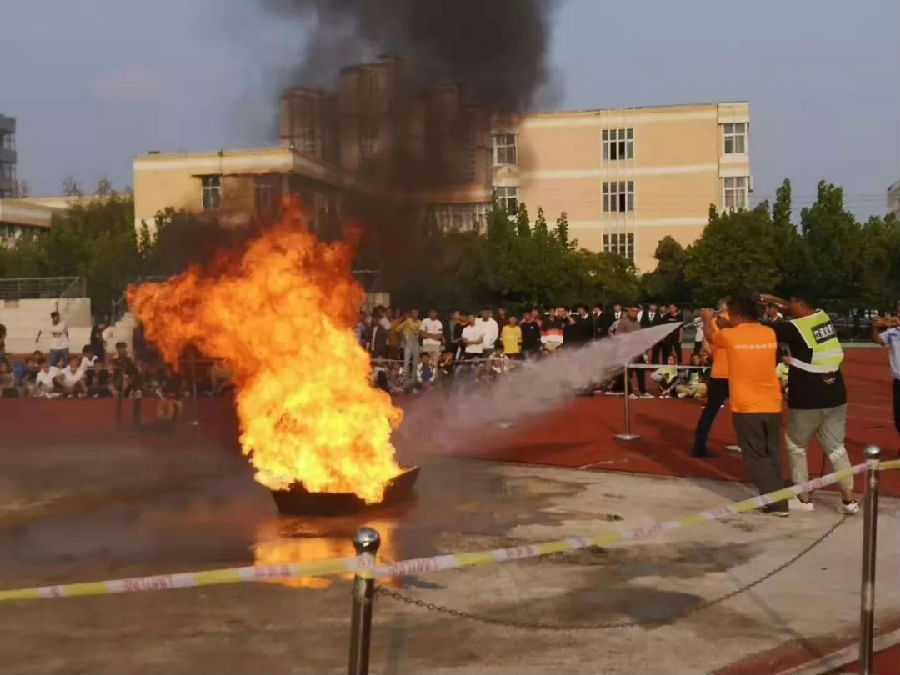 消防安全萬里行組委會主任郭先生代表組委會向學院領導贈送了萬里行旗幟。500名師生移步到學院操場,觀摩并體驗了滅火演示過程,目睹了移動式高壓細水霧滅火裝置滅火威力,感受到滅火全過程的震撼,對高壓細水霧快速滅火效果給予充分肯定。