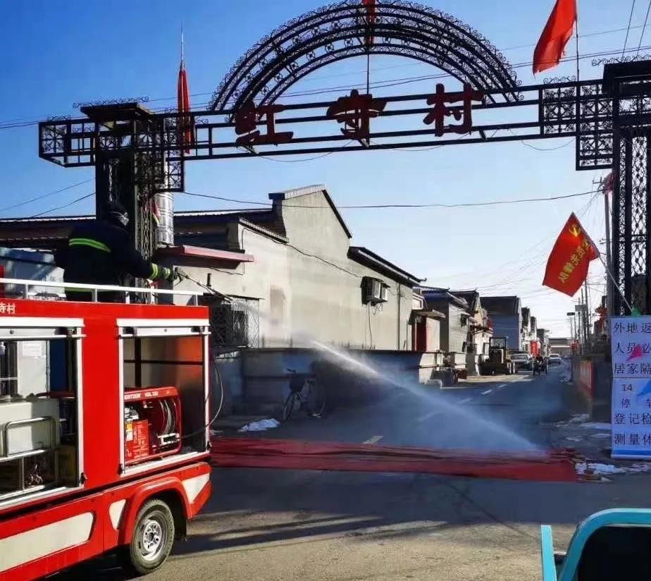 順義區紅寺村消防員進行全村消毒