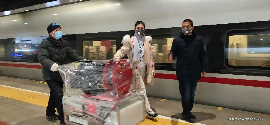 一方有難,八方支援!2020年2月10日,北京金同泰科技有限公司董事長和夫人及兩位同事一起把移動式高壓細水霧消毒滅火設備送到由北京西開往武漢的列車上。當天下午,武漢高鐵站工作人員就收到了捐贈設備。