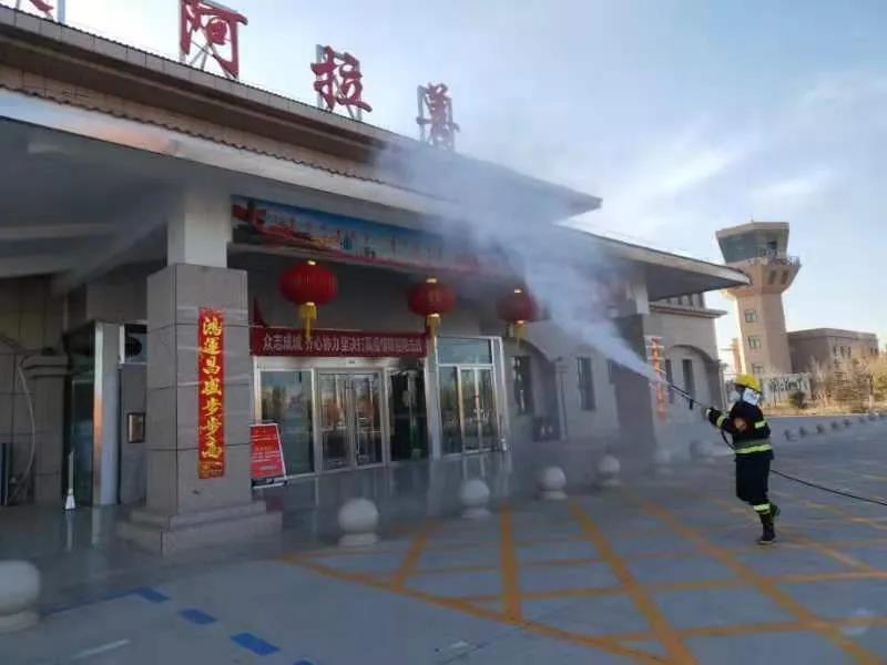 阿拉善消防志愿者為機場進行全面消毒