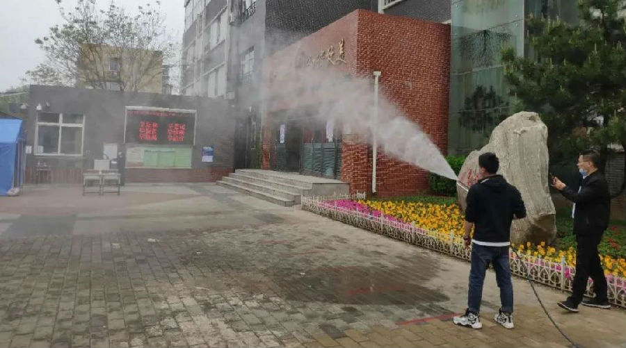復課在即,2020年4月18日,金同泰員工獻愛心,來到首都師范大學附屬育新學校,為整個校園進行了殺菌消毒,使學生們開學后能有一個干凈衛生的校園環境!
