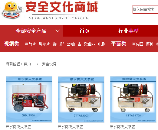 4)點擊第二行小標題中的安全設(shè)備,即可看到金同泰移動式高壓細水霧滅火裝置。